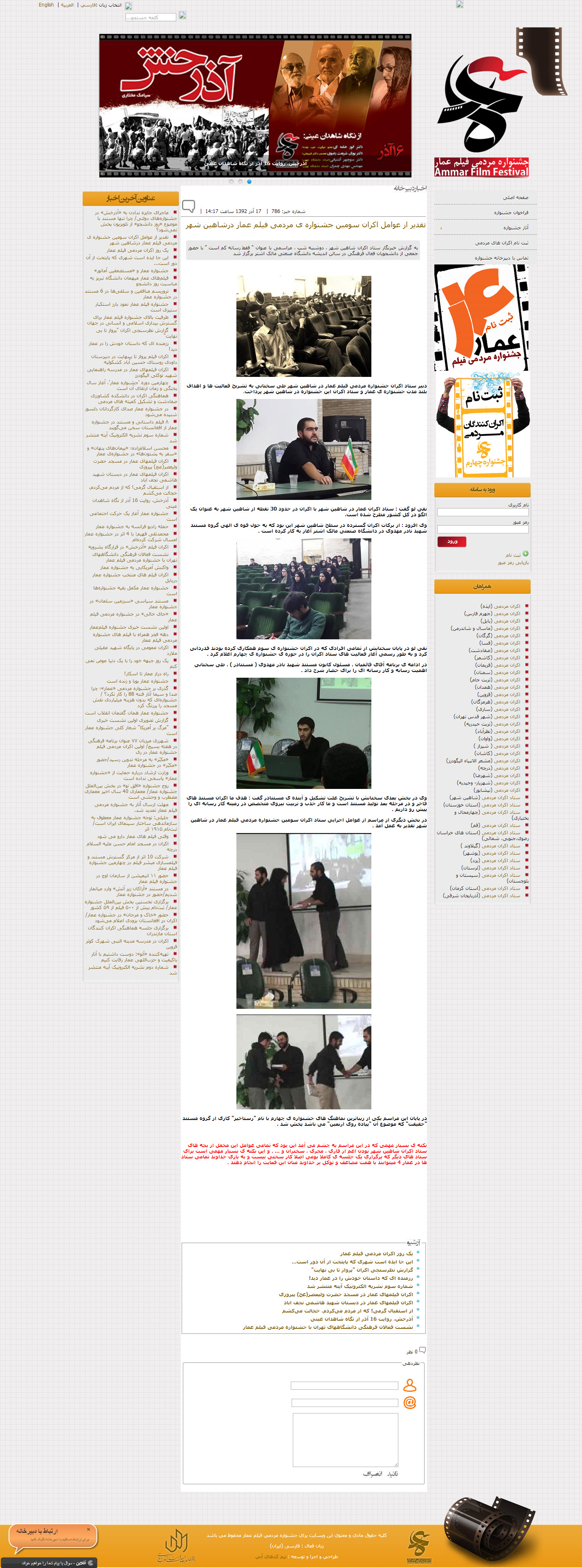 انعکاس فعالیت های مستنادر در سایت عمارفیلم
