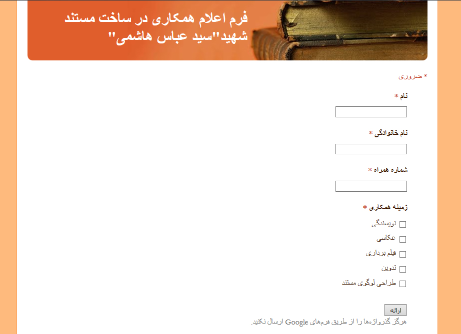 به همین منظور از عزیزانی که مایلند در ساخت این مستند سهیم باشند این فرم را تکمیل نمایند.